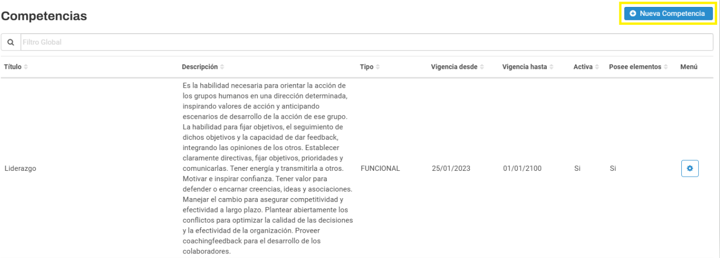 Al ingresar al módulo, se visualizará el listado de competencias en caso de tener cargada(s) alguna(s):