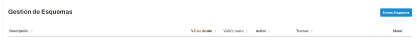 Podremos revisar el listado de esquemas creados en la tabla generada al ingresar al menú esquemas: