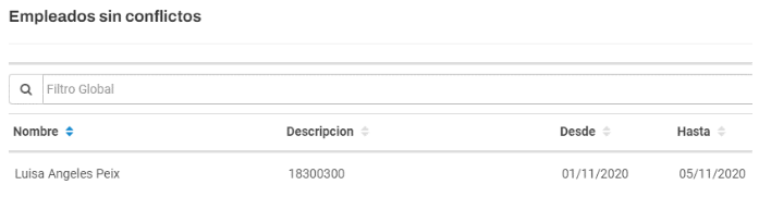 - Novedad: En caso de tener alguna novedad cargada aparecerá en esta columna.