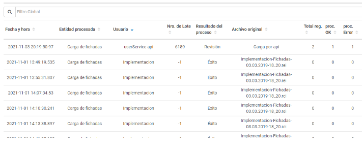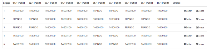 - Inconsistencias: En caso de encontrarse alguna inconsistencia o error aparecerá en esta columna. Listado de inconsistencias: