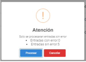 Una vez que está completa correctamente la información elegimos la opción procesar: