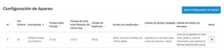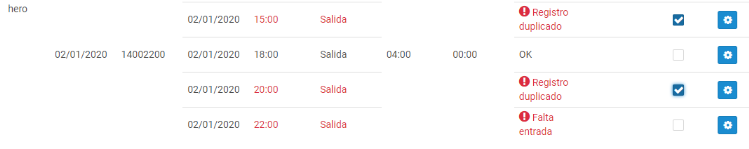 - Tiempo trabajado: Tiempo trabajado entre el par de fichadas.