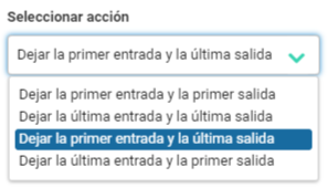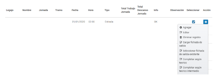 - Completar según teórico intermedio: Completar la fichada faltante con el teórico del intermedio. (Solo en horarios con teórico intermedio).