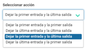 - Seleccionar fichada existente. (une la fichada de Entrada/Salida con alguna Entrada/Salida existente).
