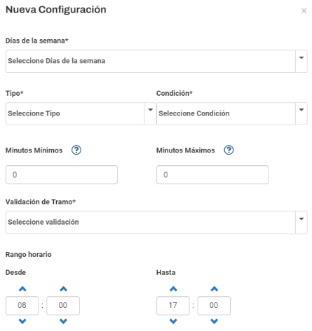 Lo primero a configurar será el campo “Desde” que indica el inicio del horario y el campo “Hasta” que indica el fin del horario. Ejemplo: