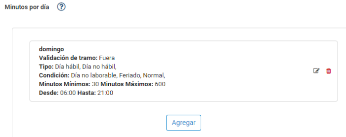 - No: En el caso de que no esté activado no se podrá cargar más este horario.