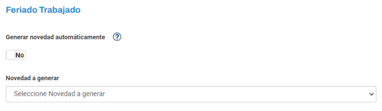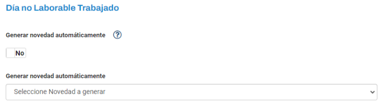 - Se puede seleccionar la novedad que se crea a la hora de crear un día no laborable trabajado automático.