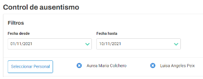 El primer paso es elegir el desde y hasta del control de ausentismo que vamos a realizar.