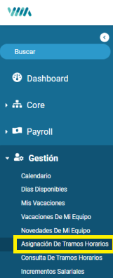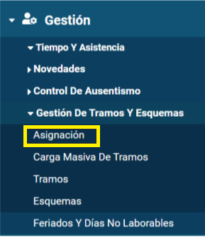 Para cargar horarios a los colaboradores debemos entrar al menú asignación de esquemas.