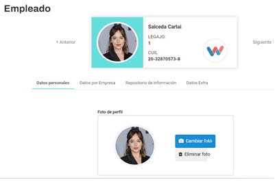 - Foto del empleado: Puede cargarse una imagen que identifique al colaborador, esta imagen se adjuntará desde el escritorio y el peso máximo debe ser de 1 MB.