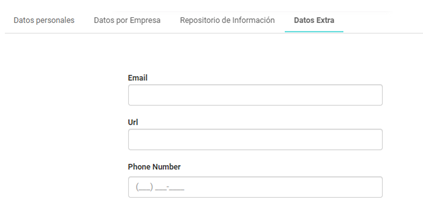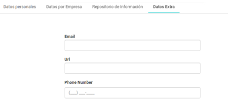 En la solapa Datos Extra se visualizarán aquellos campos que hayan sido configurados en “Formulario Dinámico” para el formulario correspondiente a la ficha de colaboradores. Este formulario aplicará para todos los legajos es decir que en todos podrá completarse la información de estos campos.