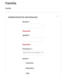 Grupo familiar: El colaborador podrá contar con la información de aquellos familiares que tenga a cargo, pudiendo agregar más de uno y contando con una serie de campos de información sobre cada familiar.