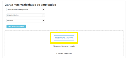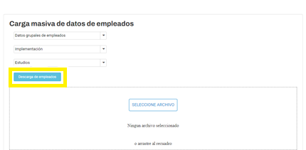 Como primer paso para realizar una carga debe descargarse el template dirigiéndose al botón “Descarga de Empleados”: