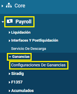 Ingresar a la opción Ganancias > Configuraciones De Ganancias