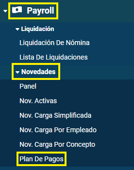 Permite asignar a los conceptos un plan de cuotas que luego se reflejan en el recibo de sueldo en forma automática (cuota 1/12, cuota 2/12, etc.), por ejemplo, descuentos de proveeduría, mercadería, etc. (Descuento de proveeduría cuota 1/12, mercaderia cuota 1/12, ect)