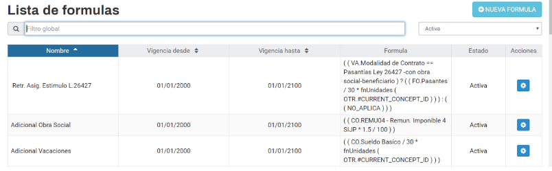● El estado de las formulas son activas e inactivas, una vez creadas y guardadas no pueden eliminarse.