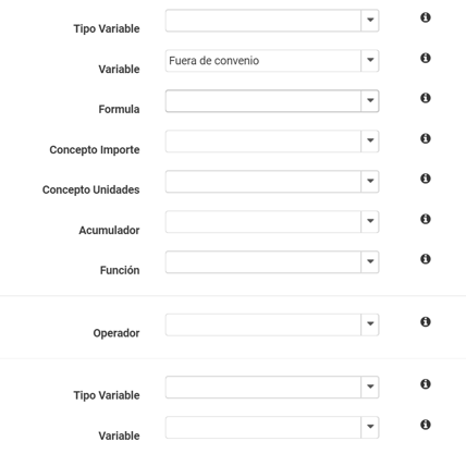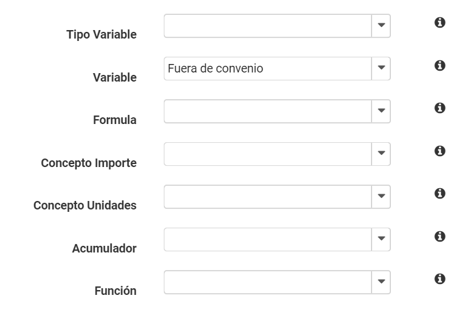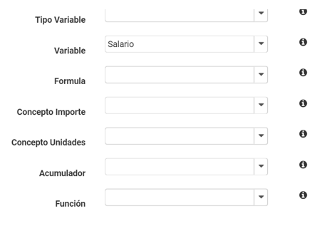 - Tipo de Variable: Despliega una lista con el tipo de opciones a seleccionar, Empleados, Empresa, Sindicato, Generales e internas de la Empresa.