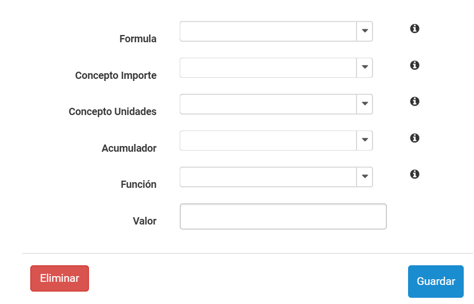 - Concepto importe: permite seleccionar el importe de la lista de conceptos previamente definidos.