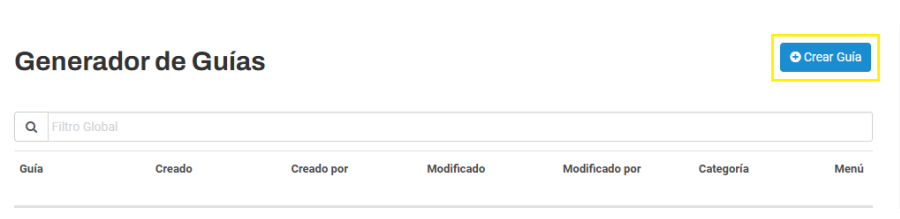 Para crear una guía se debe ir a la parte superior derecha en el botón > Crear Guía