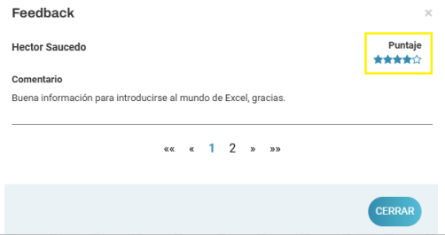 Al ingresar a la opción Feedback el facilitador podrá ver el feedback que dieron los alumnos al curso como así tambien el feedback con estrellas, si así lo han configurado.