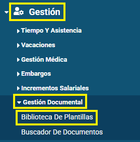 Los textos dinámicos sirven para predefinir información de la ficha del colaborador, la cual servirá para volcar al documento que se desa delegar. Para crear diferentes textos dinámicos dentro de la plantilla, se debe dirigir a: Gestión > Gestión Documental > Biblioteca De Plantillas.
