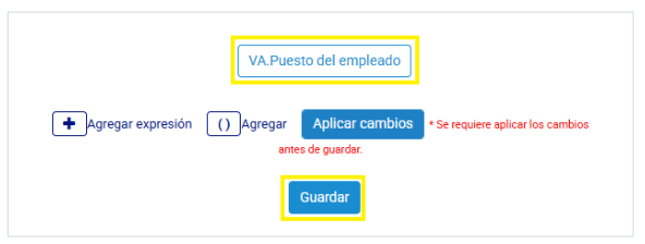 Al haber configurado la variable necesaria, se verá que le leyenda "Nuea Expresión" se modificó por el nombre de la variante creada, con la leyenda "VA. Nombre de la variable". Por último para confirmarla, se oprime el botón Guardar.