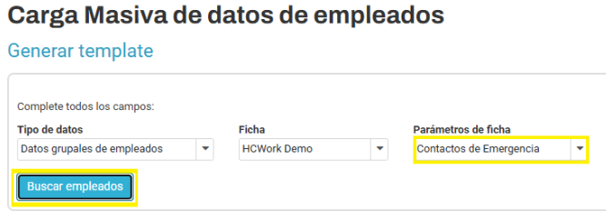 Una vez elegido el parametro de la información que vayamos a cargar, el próximo paso es Buscar empleados
