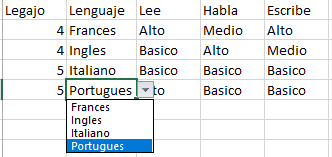 - Legajo: colocaremos el/los legajo/s de los colaborador/es al/ los que le deseamos cargar la información. Si son dos datos diferentes para el mismo legajo, se repite la cantidad de veces necesarias (ejemplo legajo n°4), en caso de que sea uno solo se cargará una unica vez (ejemplo legajo n°5) .