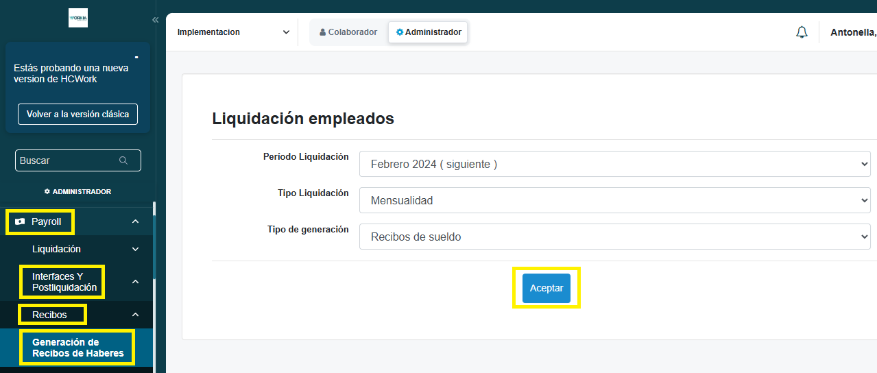 - Ingresar al menú lateral izquierdo en Payroll> Interfaces y Postliquidacion > Recibos > Generación de Recibos de Haberes