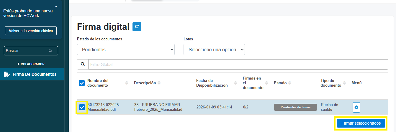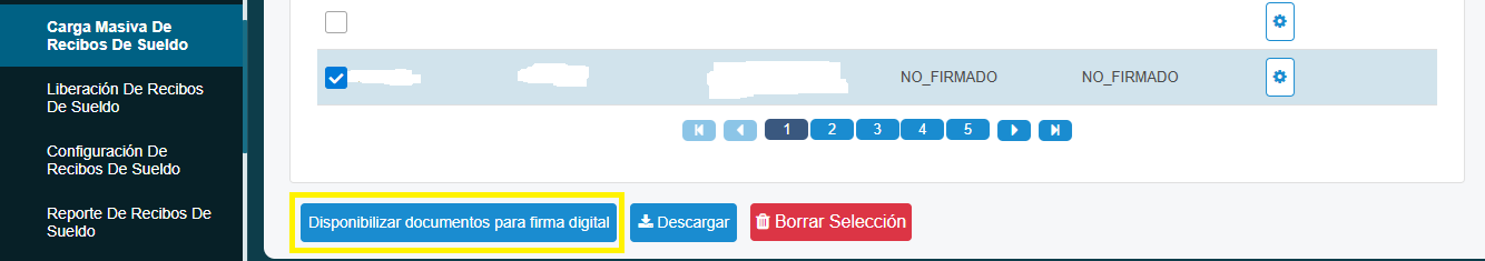 - Seleccionar los recibos que necesitamos firmar