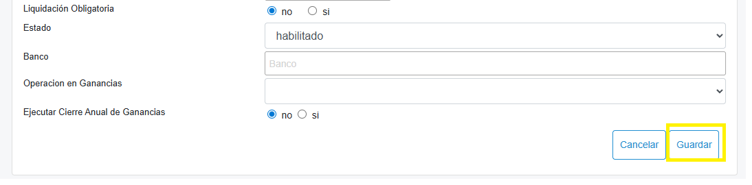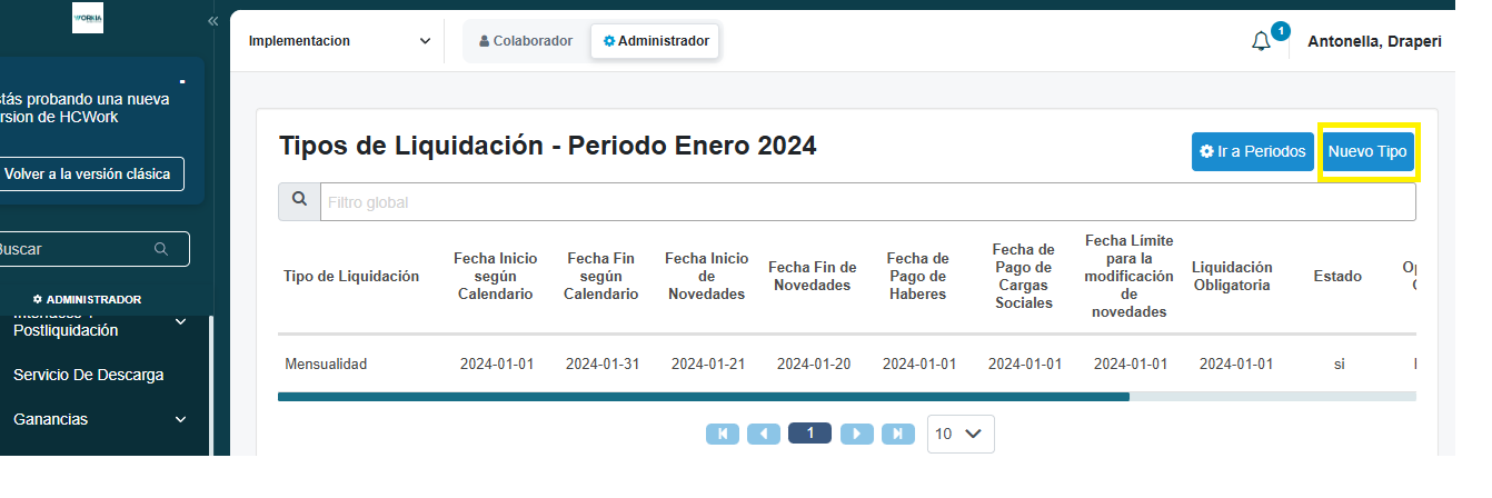 3. Haga clic en Nuevo Tipo y luego seleccione el Tipo de Liquidación. Por último, debajo haga clic en Guardar.