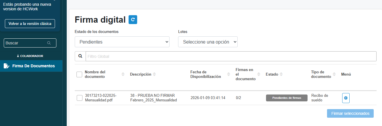 - Seleccionar los recibos que necesitamos firmar